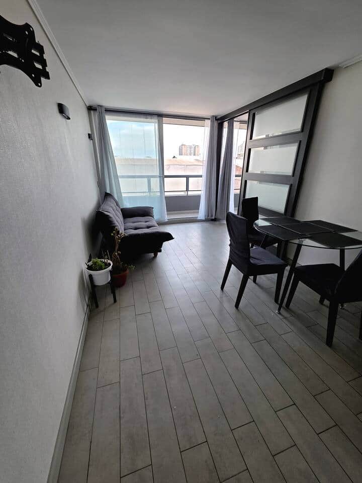 Moderno y acogedor departamento ubicado a pocos minutos del Movistar Arena, Teatro Caupolicán y estaciones de Metro como Matta y Ñuble. Perfecto para 3 personas, ofrece un espacio cómodo, funcional y lleno de estilo. Cada rincón ha sido preparado para que te sientas como en casa. Ideal para quienes viajan por conciertos, eventos, turismo o descanso, con excelente conexión a lo mejor de Santiago.