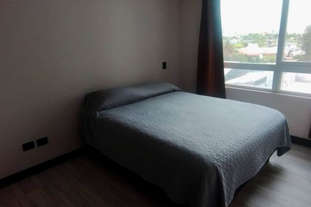 El apartamento tiene una habitación con una cómoda cama box spring de 2 plazas, ideal para descansar. Si necesitas más espacio o vienes con otra persona, también hay un futón en el living, ¡y por supuesto, incluye todo lo necesario para que estén cómodos!